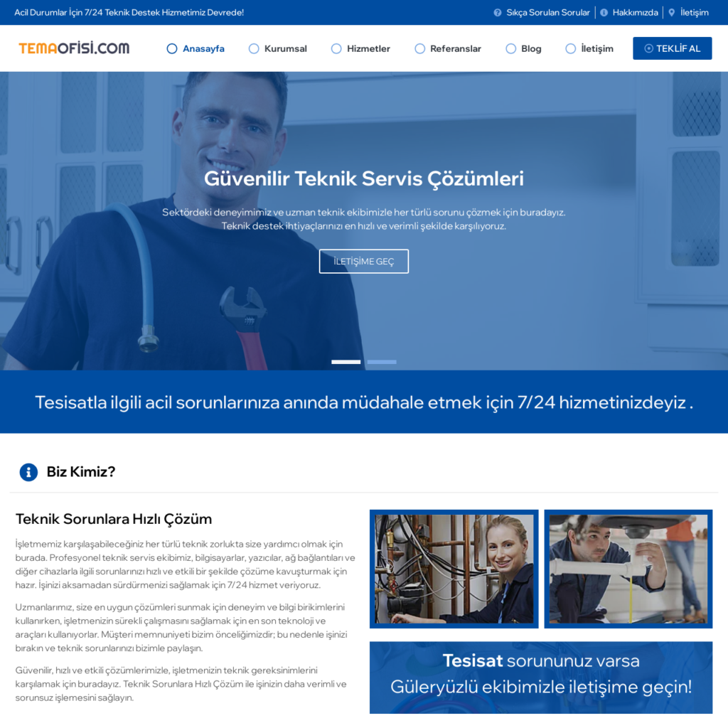 Profesyonel Teknik Servis Teması, işletmelerin teknik ihtiyaçlarını karşılamak için özel olarak tasarlanmıştır. Bu temanın esnek ve kullanıcı dostu tasarımı, her türlü teknik servis hizmeti sunan firmalar için idealdir. Müşterilerinizin sorunlarını hızlı ve etkili bir şekilde çözmek için gereken tüm araçlara sahip olacaksınız.